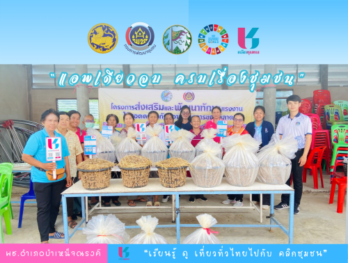 สำนักงานพัฒนาชุมชนอำเภอบำเหน็จณรงค์ จังหวัดชัยภูมิ ประชาสัมพันธ์การดาวน์โหลดแอปพลิเคชัน Click ชุมชน เพื่อ “เรียนรู้ ดู เที่ยว ทั่วไทย ไปกับ คลิกชุมชน” ให้กับครัวเรือนยากจนเป้าหมายจากระบบ TPMAP Logbook กลุ่มเปราะบาง ตกเกณฑ์ จปฐ. ในมิติด้านรายได้ และผู้ด้อยโอกาส จำนวน 20 คน ภายหลังการดำเนินดำเนินโครงการส่งเสริมและพัฒนาทักษะแรงงานให้สอดคล้องกับความต้องการของตลาด กิจกรรม: ชัยภูมิ ภูมิใจ ขจัดความยากจนและพัฒนาคนทุกช่วงวัย (ตำบลบ้านชวน) ณ วัดศรีสนามคงคา หมู่ที่ 5 ตำบลบ้านชวน อำเภอบำเหน็จณรงค์ จังหวัดชัยภูมิ เพื่อ “เรียนรู้ ดู เที่ยว ทั่วไทย ไปกับ คลิกชุมชน” นำไปสู่เป้าหมายในการ “สร้างสรรค์ชุมชน สร้างคน สร้างชาติ”