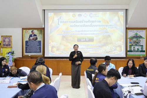 นางอรุณรัตน์ ชิงชนะ ผู้ตรวจราชการกรม ปฏิบัติหน้าที่ผู้อำนวยการศูนย์ศึกษาและพัฒนาชุมชนนครราชสีมา พร้อมด้วยผู้อำนวยการกลุ่มงาน และบุคลากรศูนย์ฯ ดำเนินโครงการเสริมสร้างศักยภาพกลไกการขับเคลื่อนงานทุนชุมชน กิจกรรมที่ 2.1 การประชุมเพิ่มศักยภาพกลไกการขับเคลื่อนงานทุนชุมชนตามหลักธรรมาภิบาลและการพัฒนาเศรษฐกิจฐานราก รุ่นที่ 2 ระหว่างวันที่ 23-25 กุมภาพันธ์ 2569 เพื่อมุ่งเน้นการพัฒนาเศรษฐกิจฐานราก และยกระดับการบริหารจัดการเงินทุนชุมชนให้มีความโปร่งใสตามหลักธรรมาภิบาล
